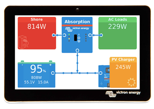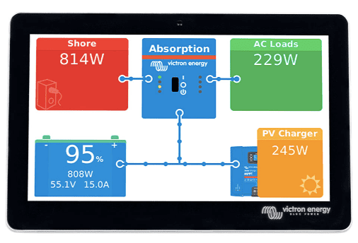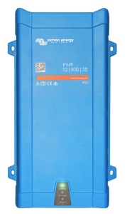 Uno de los pilares de la instalación. Convierte la energía de la batería en 230V para enchufes normales y, cuando te conectas a una red exterior, carga la batería de forma inteligente.